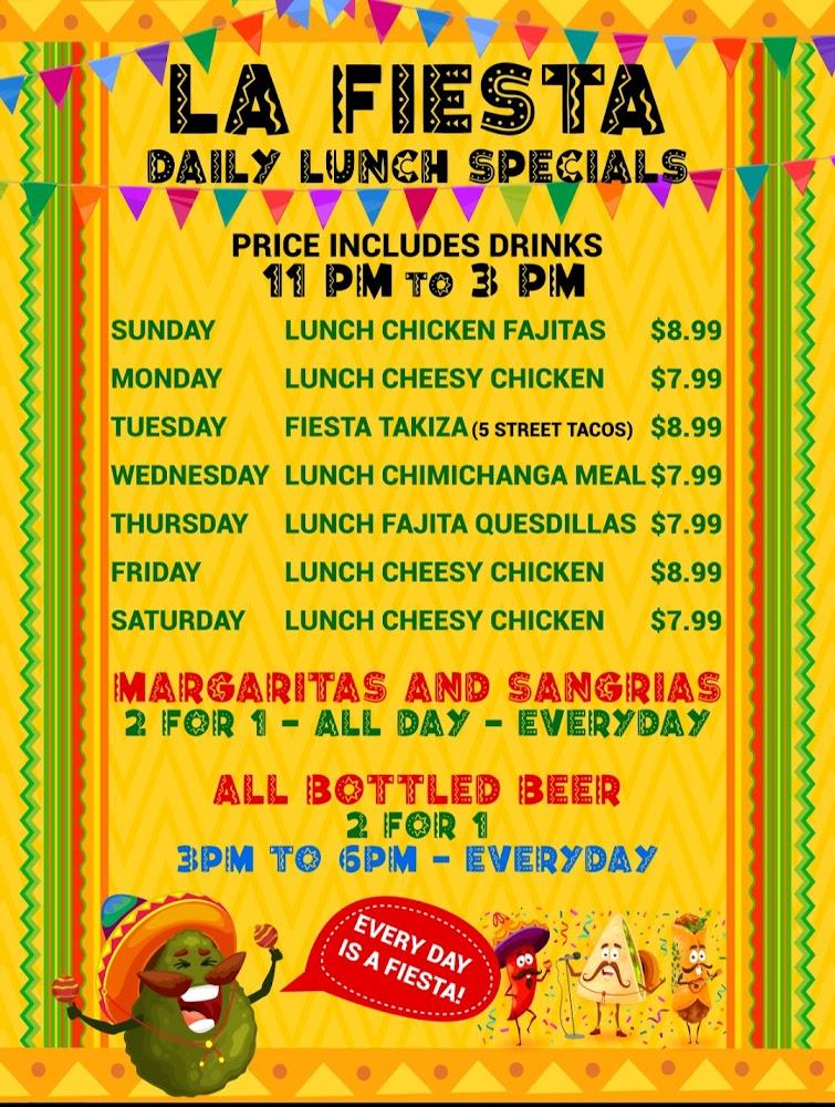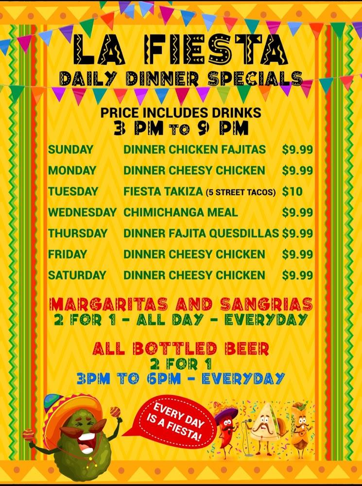 La Fiesta's menu illustrates an impressive array of Tex-Mex offerings. From hearty enchiladas to sizzling fajitas, there is something for everyone. Delicious appetizers like chorizo dip and guacamole serve as perfect starters, while carefully crafted entrees showcase traditional flavors. Don't miss the vibrant selection of margaritas, expertly mixed to complement the meal.